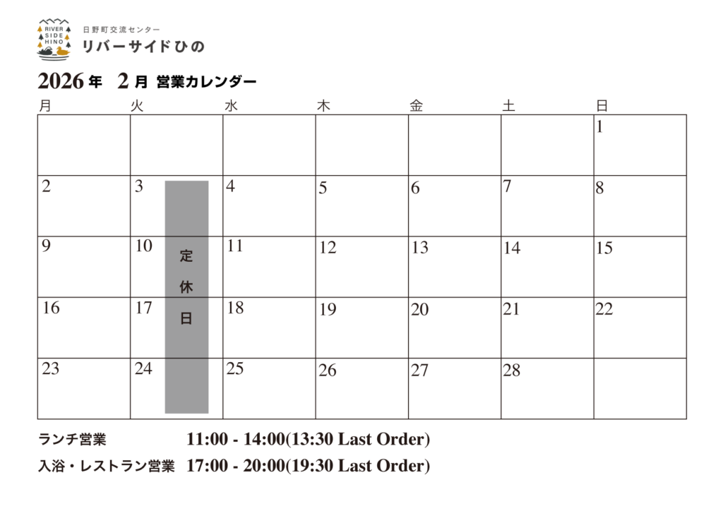 2月は火曜定休以外は通常通り営業いたします